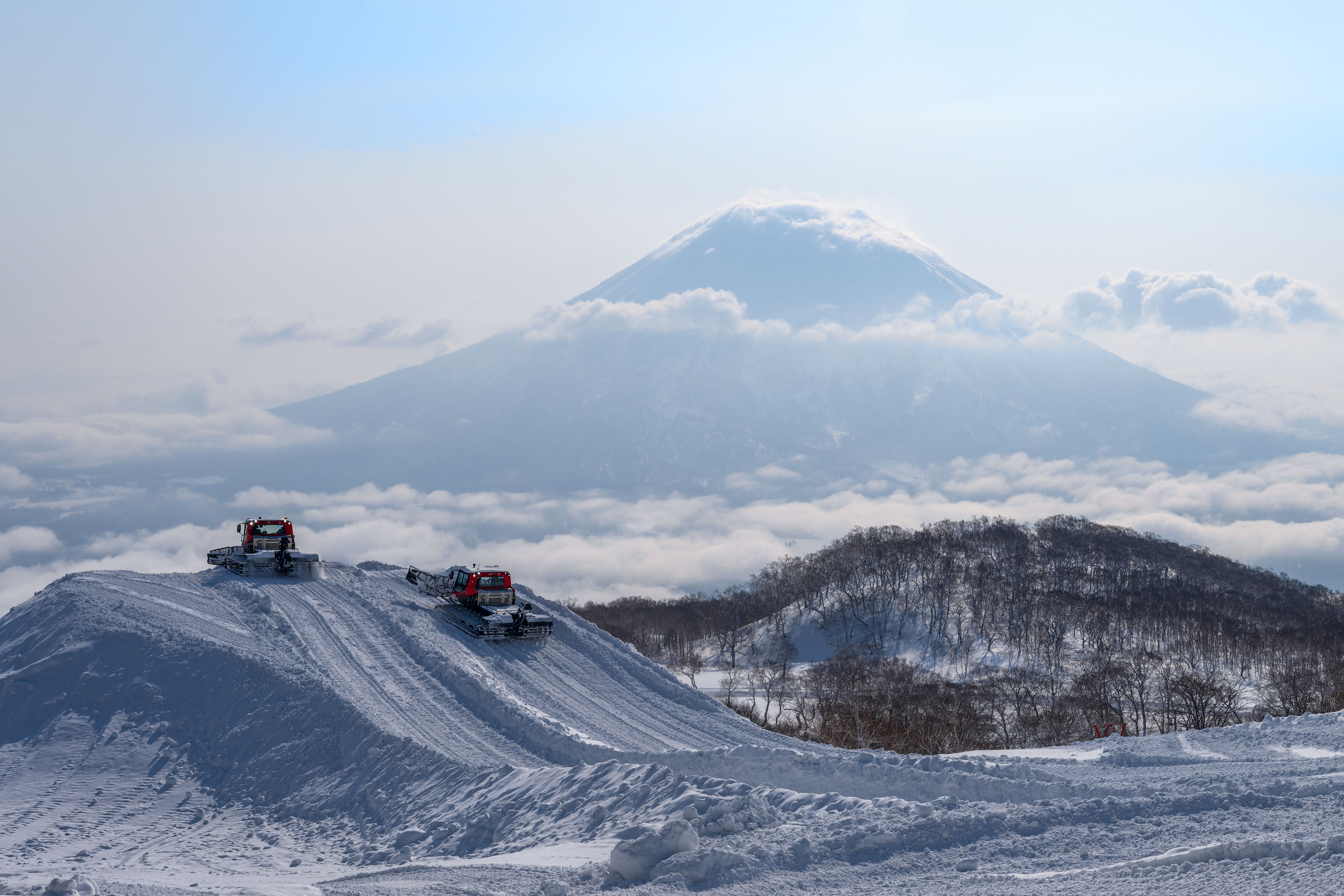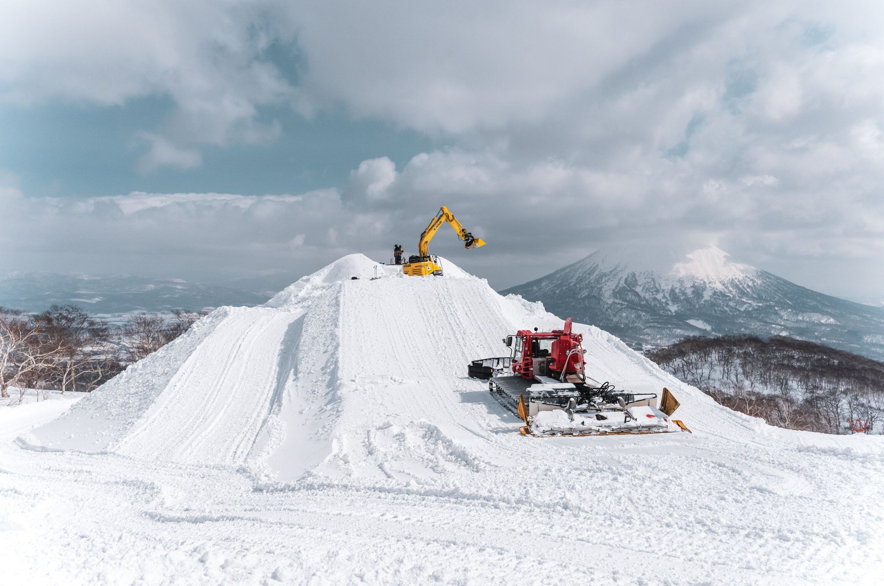 La mise en place de ce parcours exceptionnel au Tokyu Grand HIRAFU nécessite le déploiement de tout le parc machines. Plusieurs PistenBully sont mobilisés chaque jour pour donner vie à ce projet visionnaire. Parmi eux, le PistenBully 400 ParkPro, devenu depuis longtemps incontournable dans la construction de snowparks et véritable outil professionnel pour plus de créativité et de perfection sur le snowpark. Le PistenBully 600 Polar W est également de la partie. Grâce à sa puissance de treuillage exceptionnelle, il garantit des pistes parfaites ainsi qu’une gestion durable et efficace des pistes au plus haut niveau.